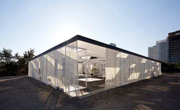 The historical relation of YAP (Young Architects Program) as a complement to cultural institutions (PS1, MAXXI, Istanbul Modern) and the fact that last year Santiago´s YAP context was changed, from a cultural center to a public park (Parque Araucano), allowed us to rethink the possibilities of the project’s brief. In this new context, the project has the explicit aim to become itself an opportunity to insert an unexisting cultural program in the park, starting from its own eventual and temporary conditions, complementing and reflecting the YAP´s character as a cultural agent, while creating a climatic and programmatically conditioned space open to a broader audience. |
