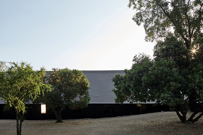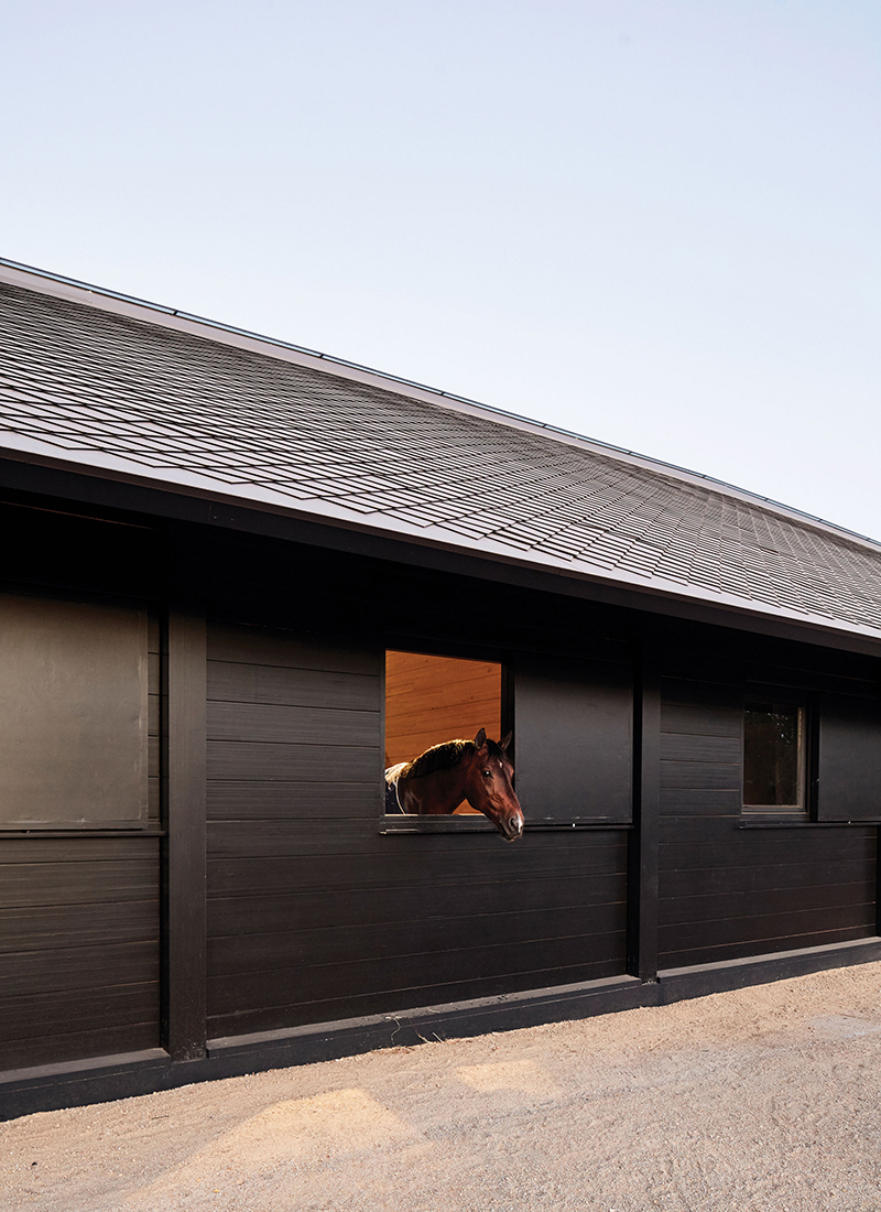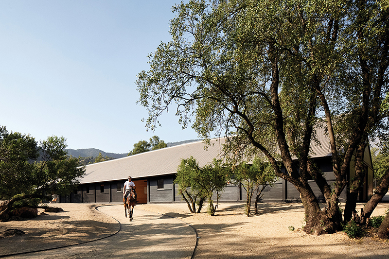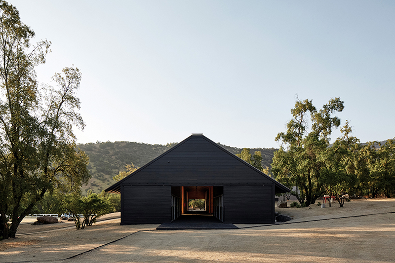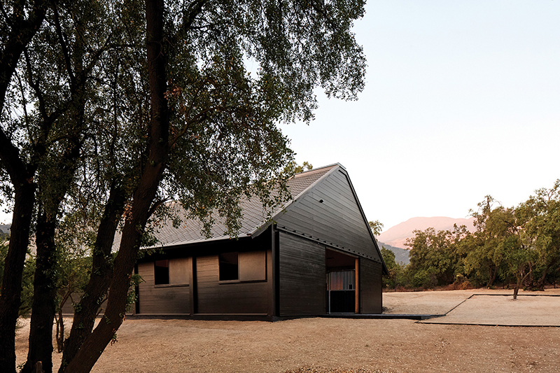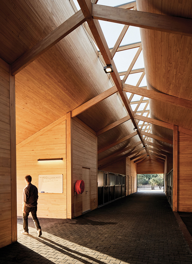 This barn is part of a group of constructions scattered in a 3ha site on the foothills of the cordillera de Los Andes near Santiago. Conceived to house 14 showjumping horses, the simple gable roof structure is designed to allow enough natural light in to work indoors through out the year with minimum artificial light required.